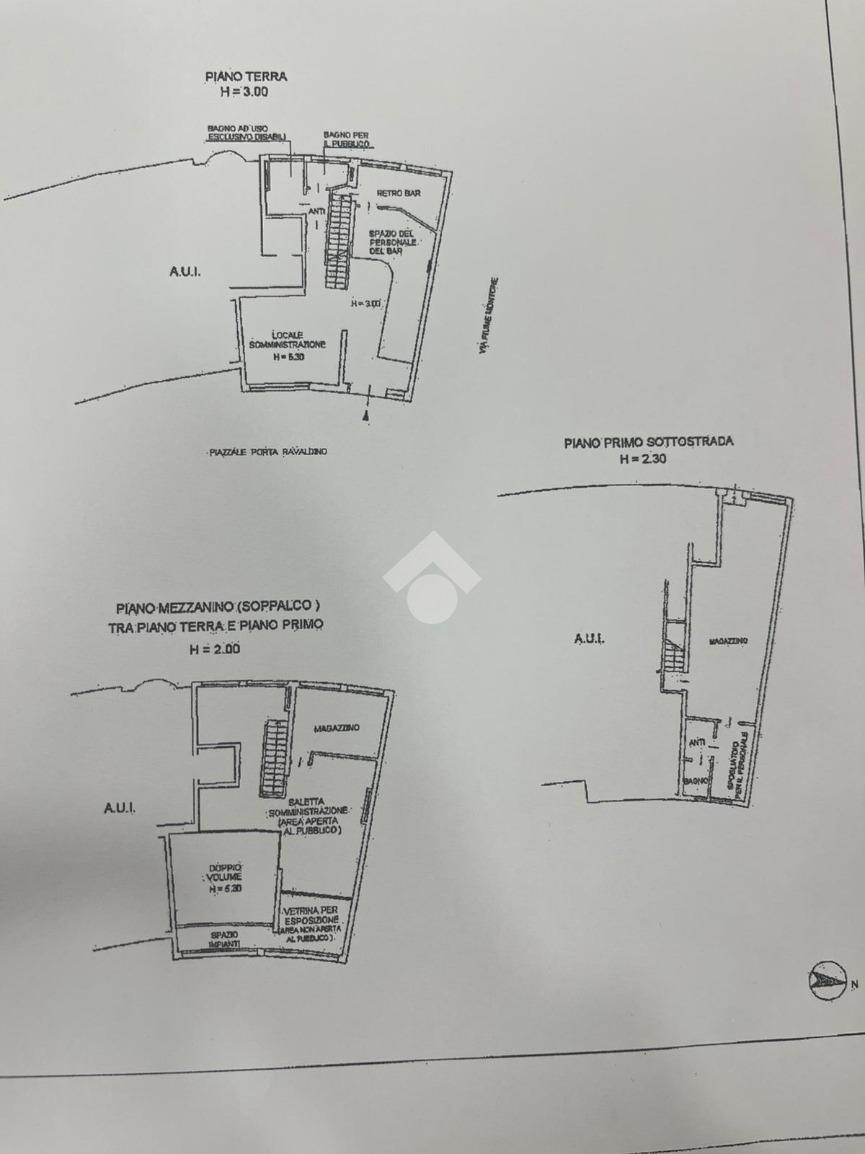 Spazio commerciale in locazione si estende su una superficie di 143 mq, divisi su tre livelli e già adibiti con tutte le attrezzature per un bar o attività gastronomica .