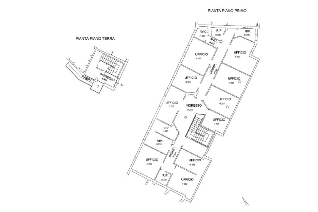 L'ufficio si sviluppa al primo piano: attualmente è diviso in dieci vani distinti, ideali per un'attività poliambulatoriale, contabile, vi è anche il bagno con doccia inserita.